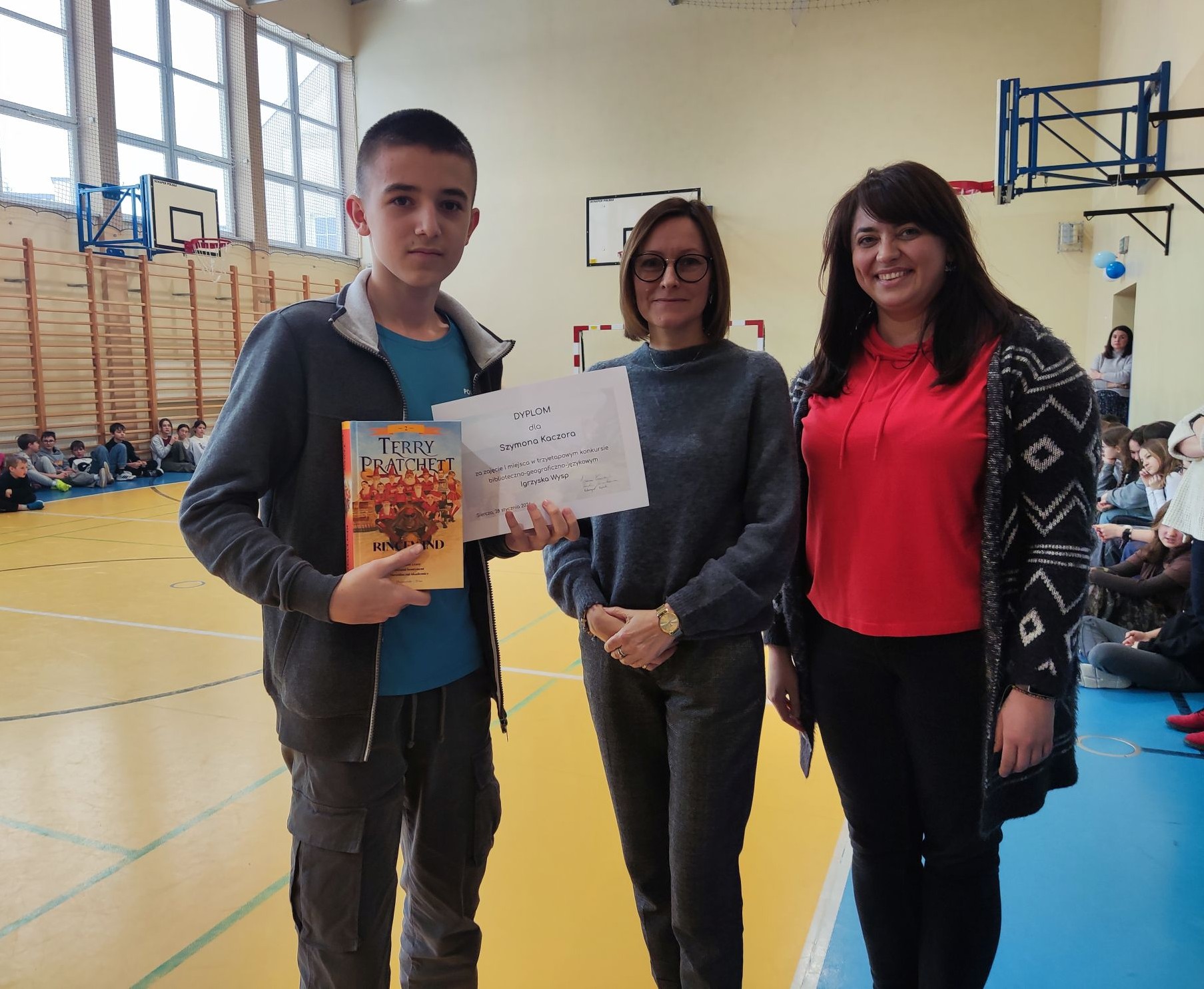 W środę, 28 stycznia 2026 r., podczas apelu szkolnego w obecności Pani Dyrektor Małgorzaty Jarosz-Barwińskiej, ogłoszone zostały wyniki konkursów oraz wręczono nagrody uczniom.